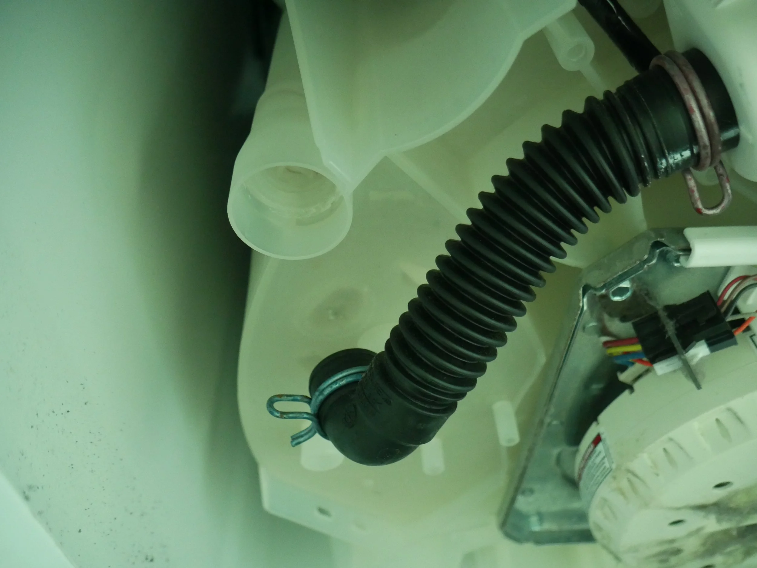 Use pliers to slide the clamp back, then carefully loosen the hose to let trapped water drain.